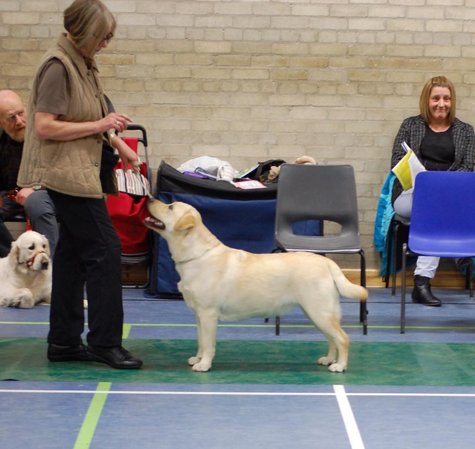 Cream male full of substance, masculine head but with the softest expression enhanced by his excellent pigmentation. Good length of neck leading into well placed shoulders, good return of upper arm, deep chest, elbows tight to his well sprung ribs, firm level topline with strong loin. Super hind quarters enabled him to move soundly with a great stride. Pleased to award him BOB, went on to 4th in show. Found out that his wins today gave him his final points for his Junior Warrant. Congratulations.
